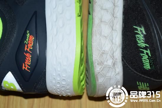 这次测试的Fresh Foam Zante v2在轻量款跑鞋中可以算是比较厚实的,鞋底增厚的幅度一度以为脚上穿的不是New Balance的鞋子,与前几年New Balance主打的Minimus明显不一样,现在的New Balance的设计思路更加看重缓冲效果,一上脚最直观的感觉比上一代弹性又加强了,左脚老款,右脚新款,新款的包裹感也有所强化,尤其在前掌部位更加突出,整个鞋子外观风格两代鞋款基本一致。